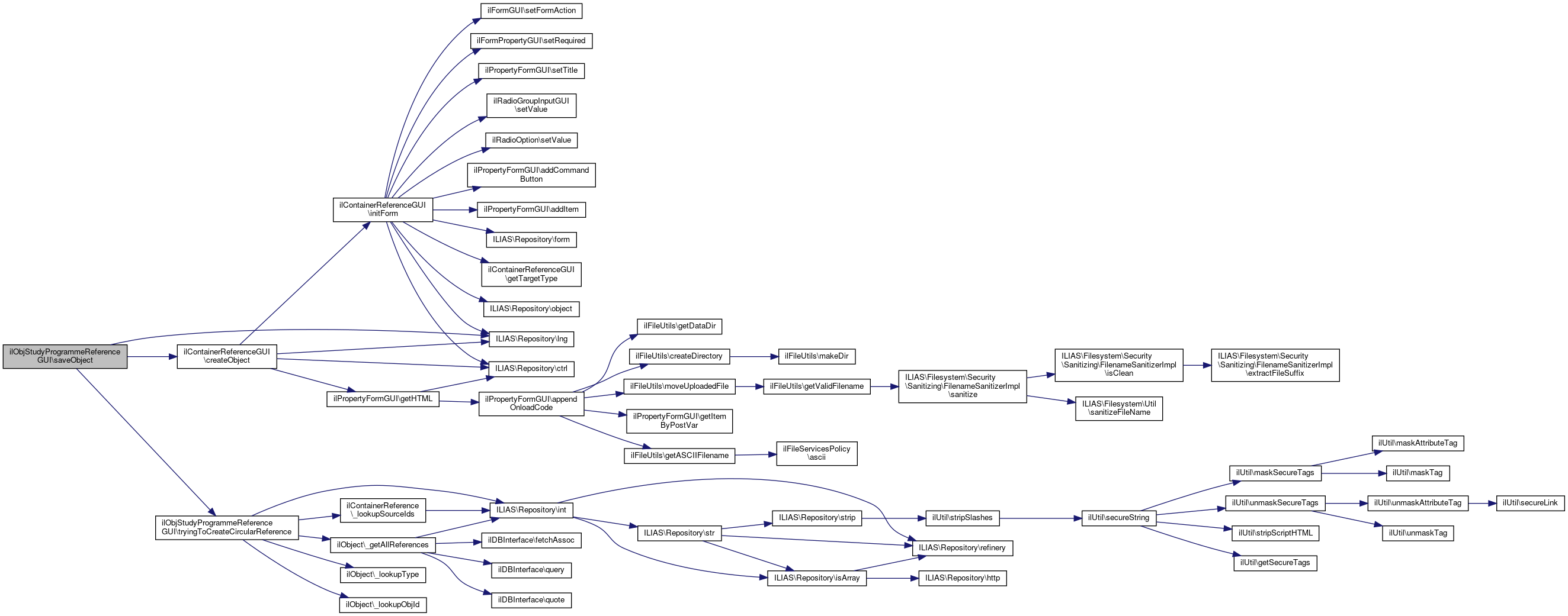 Here is the call graph for this function:| ilObjStudyProgrammeReferenceGUI::saveObject | ( | ) |