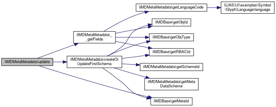 Here is the call graph for this function:| ilMDMetaMetadata::update | ( | ) |