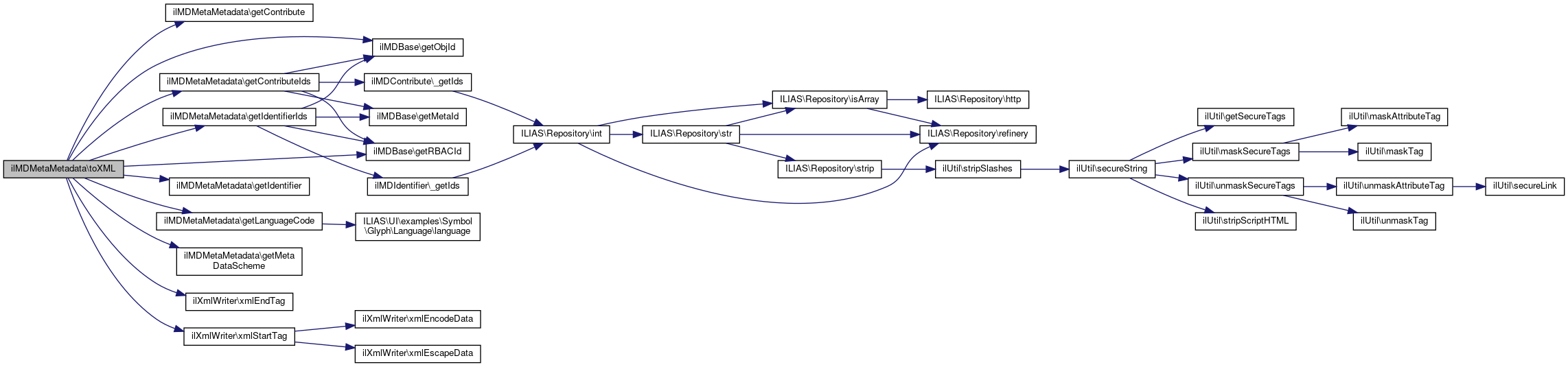 Here is the caller graph for this function:| ilMDMetaMetadata::toXML | ( | ilXmlWriter | $writer | ) |