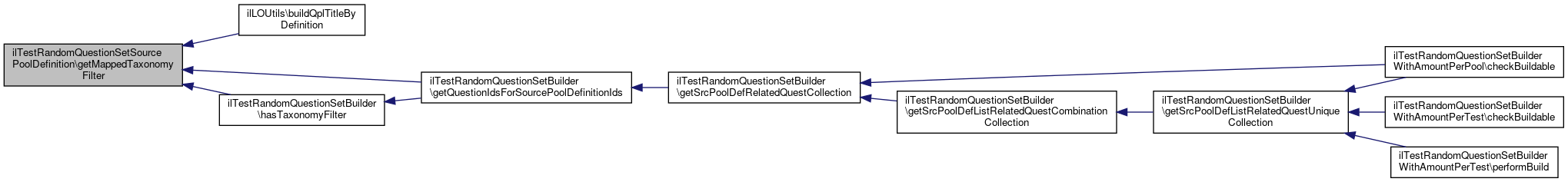 Here is the caller graph for this function:| ilTestRandomQuestionSetSourcePoolDefinition::getMappedTaxonomyFilter | ( | ) |