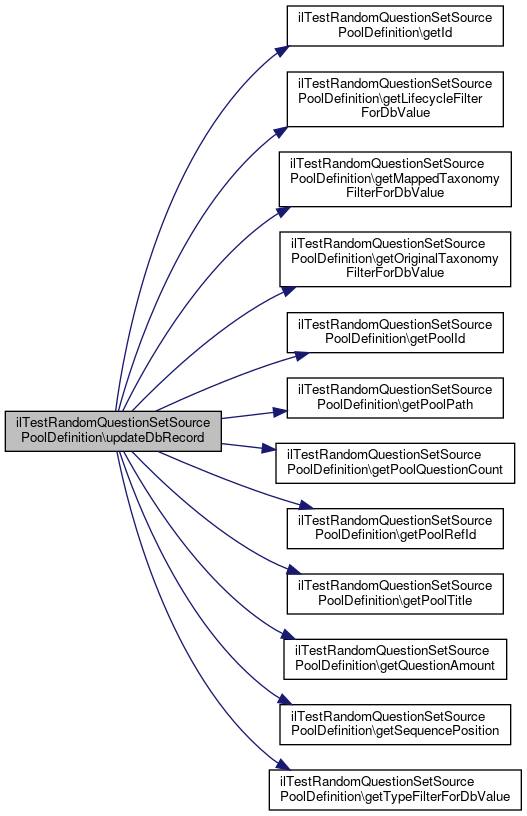 Referenced by ilTestRandomQuestionSetSourcePoolDefinitionList\addDefinition(), ilTestRandomQuestionSetPoolDefinitionFormGUI\build(), ilTestRandomQuestionSetBuilder\buildSetQuestionCollection(), deleteFromDb(), ilTestRandomQuestionSetSourcePoolDefinitionListTableGUI\fetchOrderNumberParameter(), ilTestRandomQuestionSetSourcePoolDefinitionListTableGUI\fetchQuestionAmountParameter(), ilTestRandomQuestionsQuantitiesDistribution\getAvailableSharedQuestionAmount(), ilTestRandomQuestionsQuantitiesDistribution\getExclusiveQuestionAmount(), ilTestRandomQuestionsQuantitiesDistribution\getIntersectionQstCollectionByDefinitionMap(), ilTestRandomQuestionsQuantitiesDistribution\getIntersectionSharingDefinitionList(), ilTestRandomQuestionsQuantitiesDistribution\getRequiredSharedQuestionAmount(), ilTestRandomQuestionsQuantitiesDistribution\getSrcPoolDefRelatedQuestionAmount(), saveToDb(), and updateDbRecord().