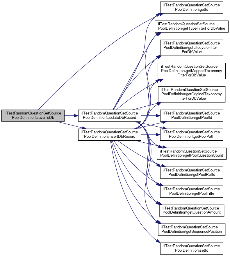 Here is the call graph for this function:| ilTestRandomQuestionSetSourcePoolDefinition::saveToDb | ( | ) |