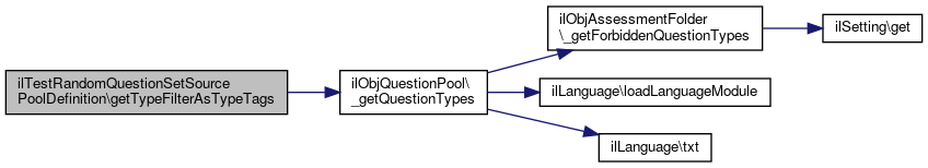 Here is the caller graph for this function:| ilTestRandomQuestionSetSourcePoolDefinition::getTypeFilterAsTypeTags | ( | ) |