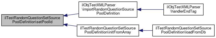 Here is the caller graph for this function:| ilTestRandomQuestionSetSourcePoolDefinition::setPoolId | ( | int | $pool_id | ) |