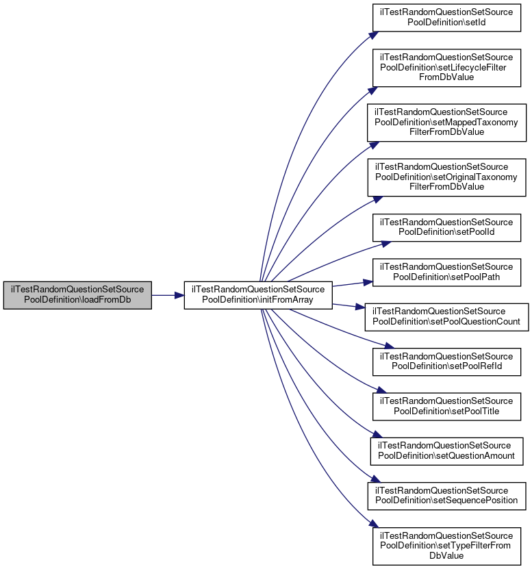 References setId(), setLifecycleFilterFromDbValue(), setMappedTaxonomyFilterFromDbValue(), setOriginalTaxonomyFilterFromDbValue(), setPoolId(), setPoolPath(), setPoolQuestionCount(), setPoolRefId(), setPoolTitle(), setQuestionAmount(), setSequencePosition(), and setTypeFilterFromDbValue().
