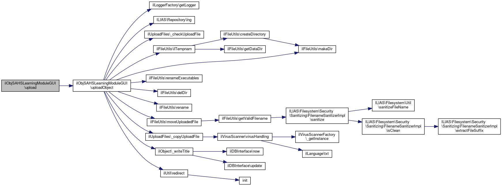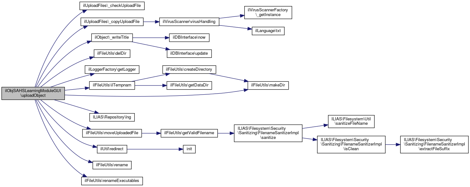 Here is the call graph for this function:| ilObjSAHSLearningModuleGUI::uploadObject | ( | ) |