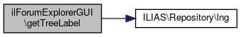 Here is the call graph for this function:| ilForumExplorerGUI::getTreeLabel | ( | ) |