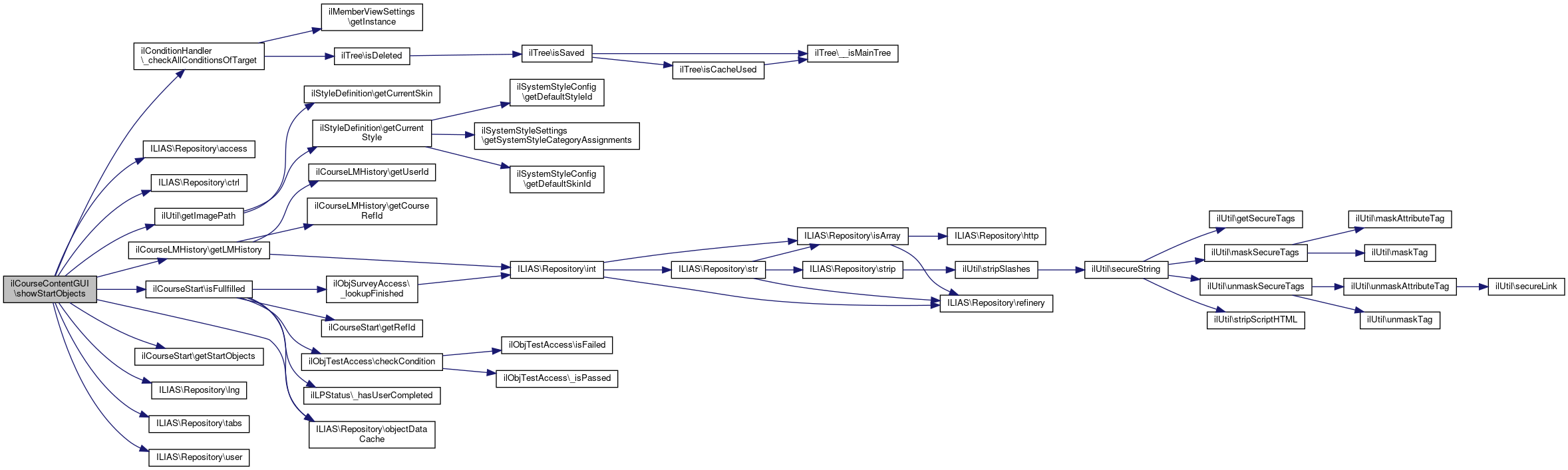 Here is the call graph for this function:| ilCourseContentGUI::showStartObjects | ( | ilCourseStart | $start_obj | ) |