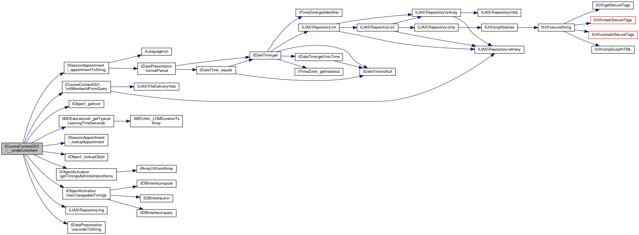 Here is the call graph for this function:| ilCourseContentGUI::__renderUserItem | ( | array | $item, |