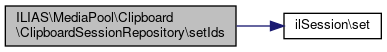 Here is the call graph for this function:| ILIAS\MediaPool\Clipboard\ClipboardSessionRepository::setIds | ( | array | $ids | ) |
