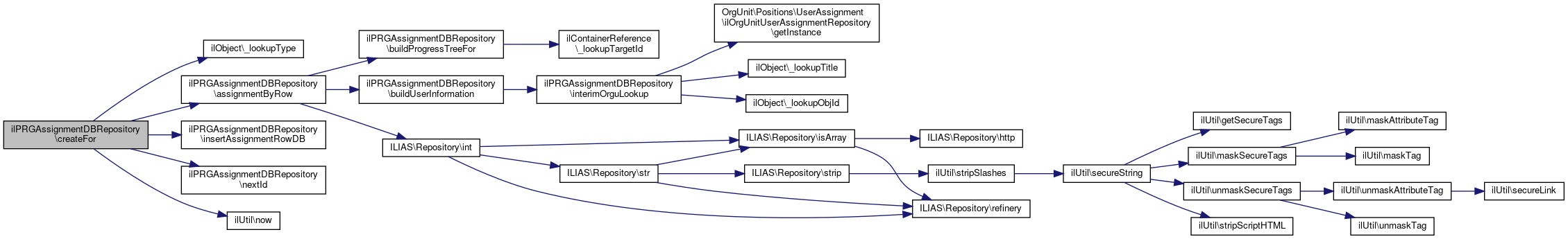 Here is the call graph for this function:| ilPRGAssignmentDBRepository::createFor | ( | int | $prg_obj_id, |