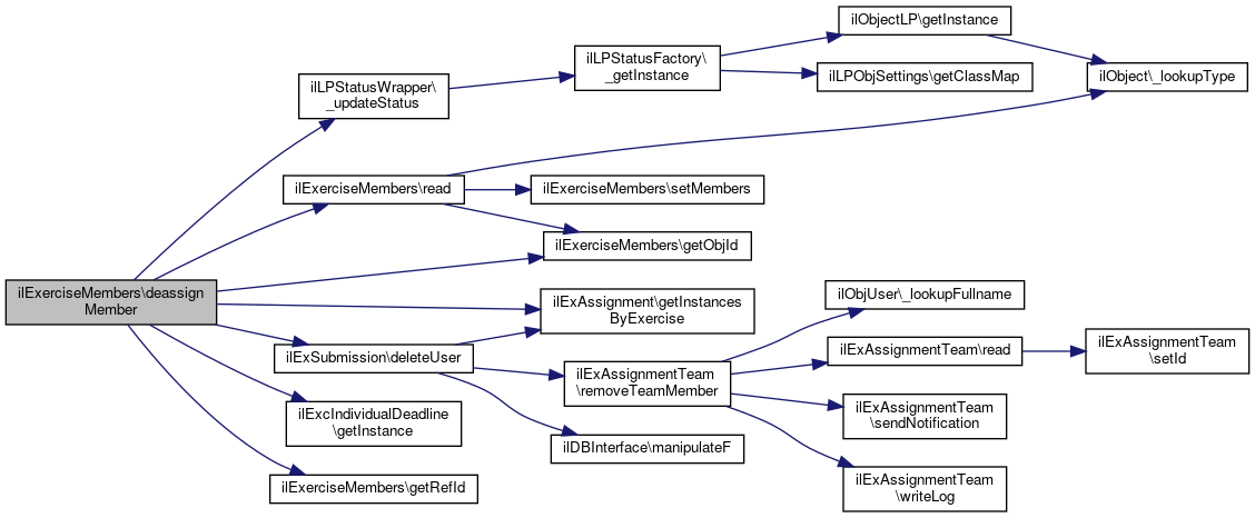 Here is the call graph for this function:| ilExerciseMembers::deassignMember | ( | int | $a_usr_id | ) |