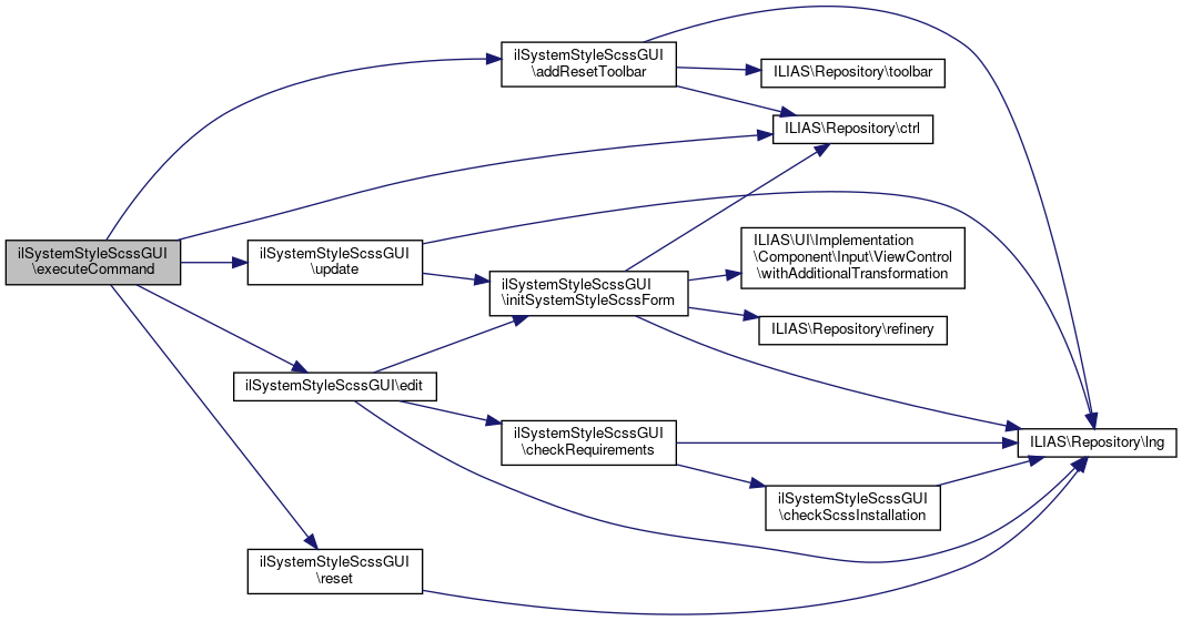 Here is the caller graph for this function:| ilSystemStyleScssGUI::executeCommand | ( | ) |