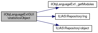 Here is the call graph for this function:| ilObjLanguageExtGUI::statisticsObject | ( | ) |