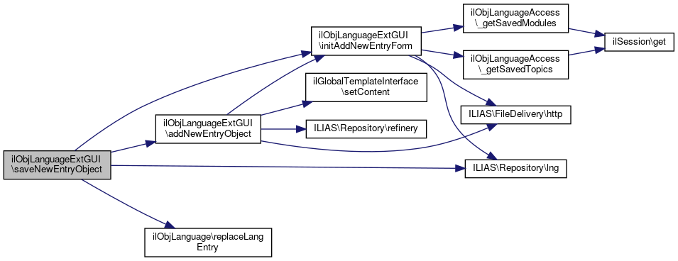 Here is the call graph for this function:| ilObjLanguageExtGUI::saveNewEntryObject | ( | ) |
