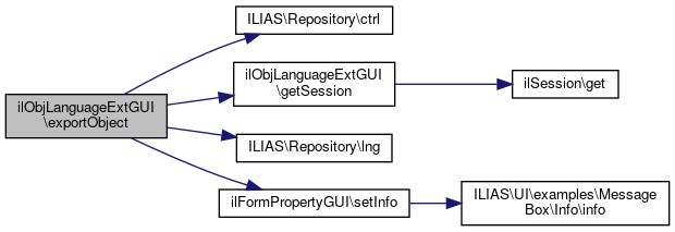 Here is the call graph for this function:| ilObjLanguageExtGUI::exportObject | ( | ) |