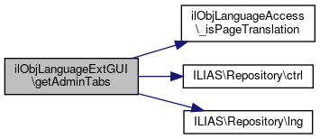 Here is the call graph for this function:| ilObjLanguageExtGUI::getAdminTabs | ( | ) |