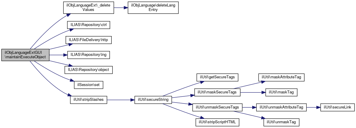 Here is the call graph for this function:| ilObjLanguageExtGUI::maintainObject | ( | ) |