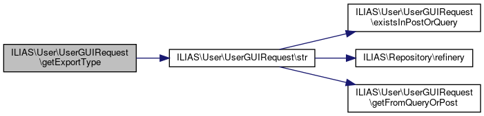 Here is the call graph for this function:| ILIAS\User\UserGUIRequest::getExportType | ( | ) |