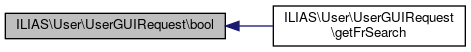 Here is the caller graph for this function:| ILIAS\User\UserGUIRequest::getFrSearch | ( | ) |