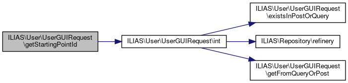 Here is the call graph for this function:| ILIAS\User\UserGUIRequest::getStartingPointId | ( | ) |
