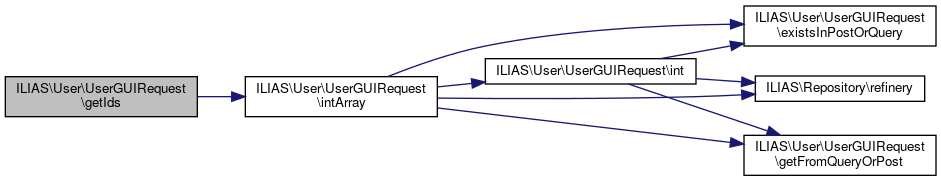 Here is the call graph for this function:| ILIAS\User\UserGUIRequest::getIds | ( | ) |