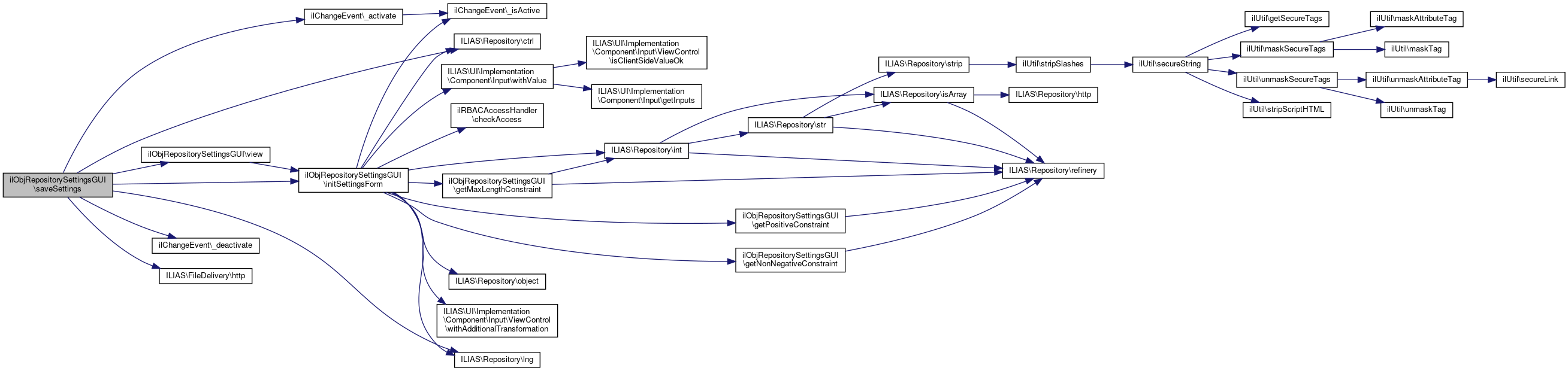 Here is the call graph for this function:| ilObjRepositorySettingsGUI::saveSettings | ( | ) |
