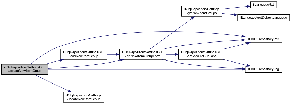 References $ilSetting, ilObjectGUI\$settings, ILIAS\Repository\ctrl(), ilObjRepositorySettings\getNewItemGroups(), ilObjRepositorySettings\getNewItemGroupSubItems(), ILIAS\Repository\lng(), and ilObjRepositorySettings\updateNewItemGroupOrder().