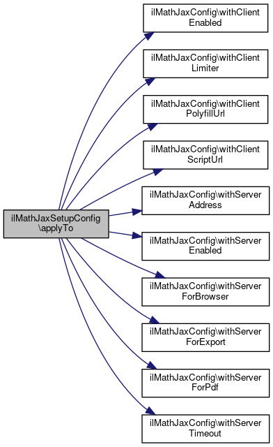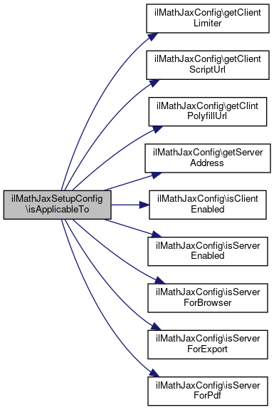 Here is the call graph for this function:| ilMathJaxSetupConfig::isApplicableTo | ( | ilMathJaxConfig | $config | ) |