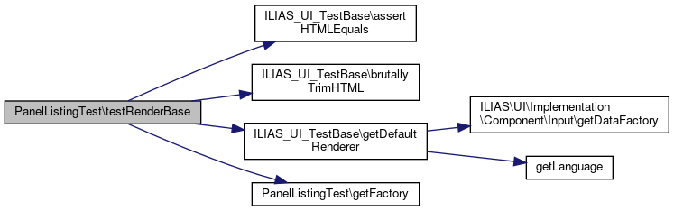 Here is the call graph for this function:| PanelListingTest::testRenderBase | ( | ) |