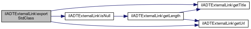 Here is the call graph for this function:| ilADTExternalLink::exportStdClass | ( | ) |