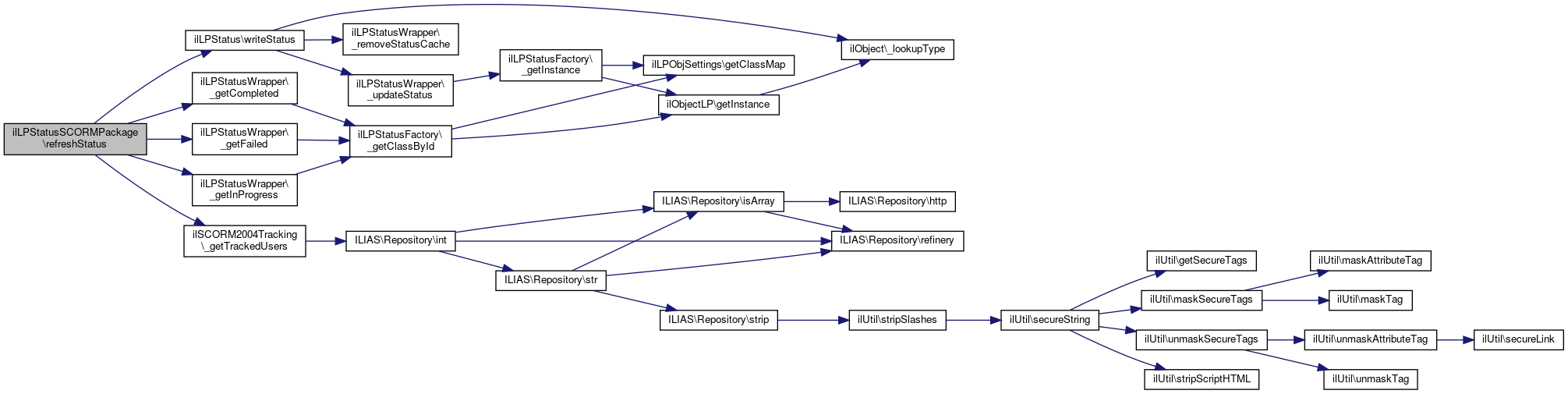 Here is the call graph for this function:| ilLPStatusSCORMPackage::refreshStatus | ( | int | $a_obj_id, |