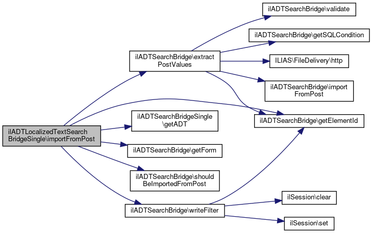Here is the call graph for this function:| ilADTLocalizedTextSearchBridgeSingle::importFromPost | ( | array | $a_post = null | ) |