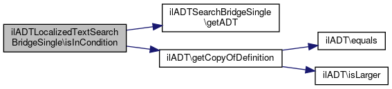 Here is the call graph for this function:| ilADTLocalizedTextSearchBridgeSingle::isInCondition | ( | ilADT | $a_adt | ) |