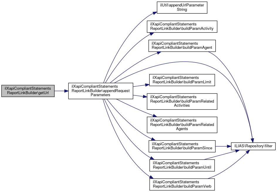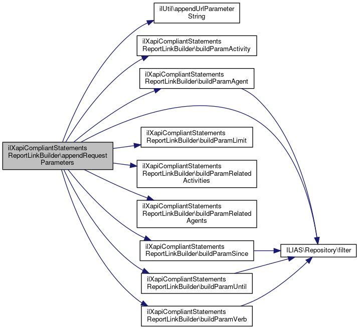 References ilUtil\appendUrlParameterString(), buildParamActivity(), buildParamAgent(), buildParamLimit(), buildParamRelatedActivities(), buildParamRelatedAgents(), buildParamSince(), buildParamUntil(), buildParamVerb(), and ILIAS\Repository\filter().