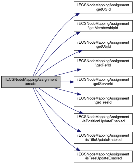 Here is the call graph for this function:| ilECSNodeMappingAssignment::create | ( | ) |