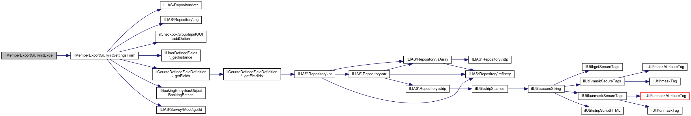Here is the call graph for this function:| ilMemberExportGUI::initExcel | ( | ilPropertyFormGUI | $a_form = null | ) |