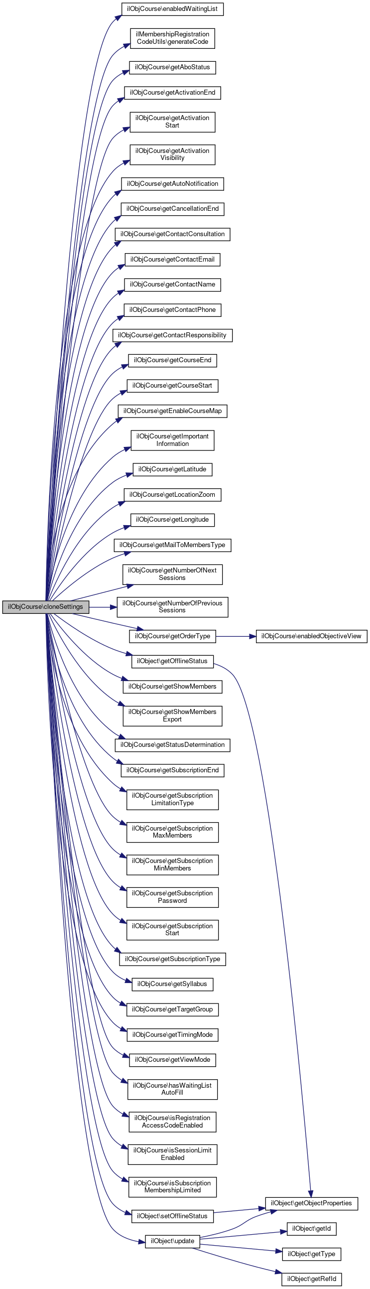 Collaboration diagram for ilObjCourse:Public Member Functions | |