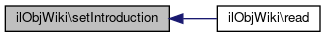Here is the caller graph for this function:| ilObjWiki::setIntroduction | ( | string | $a_introduction | ) |