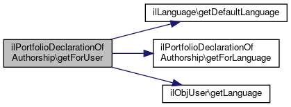 Here is the caller graph for this function:| ilPortfolioDeclarationOfAuthorship::getForUser | ( | ilObjUser | $user | ) |