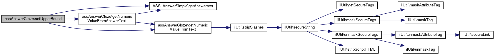 Here is the caller graph for this function:| assAnswerCloze::setUpperBound | ( | string | $bound | ) |