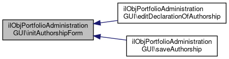 Here is the caller graph for this function:| ilObjPortfolioAdministrationGUI::initAuthorshipForm | ( | ) |