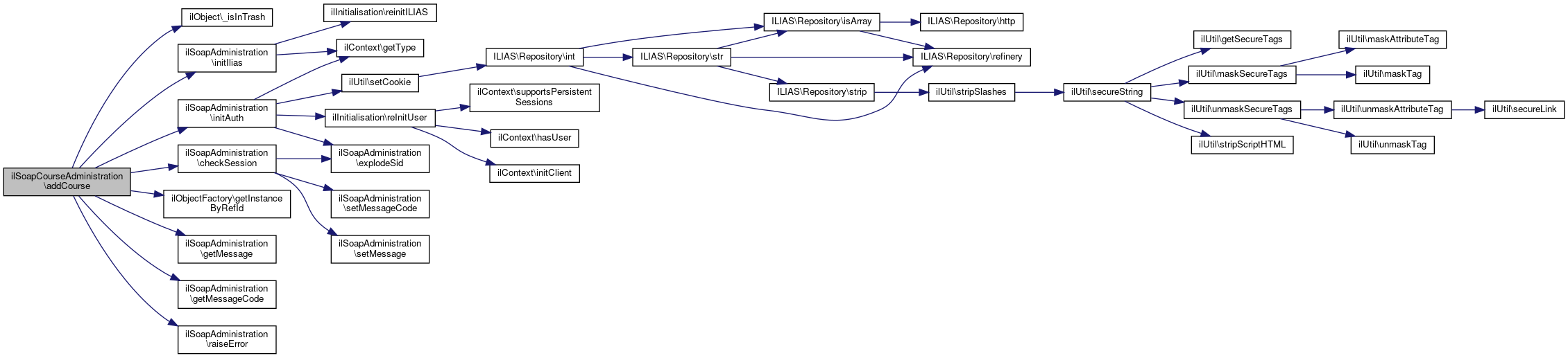 Here is the call graph for this function:| ilSoapCourseAdministration::getCoursesForUser | ( | string | $sid, |