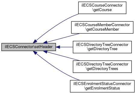 Here is the call graph for this function:| ilECSConnector::setHeader | ( | array | $a_header_strings | ) |