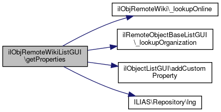 Here is the call graph for this function:| ilObjRemoteWikiListGUI::getProperties | ( | ) |