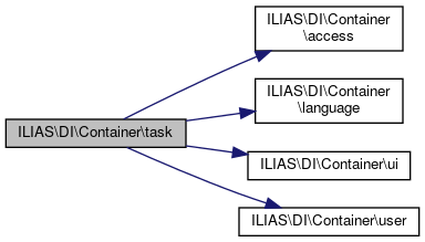 Here is the caller graph for this function:| ILIAS\DI\Container::task | ( | ) |