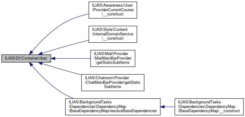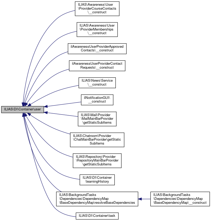 Referenced by ILIAS\Awareness\User\ProviderCurrentCourse\__construct(), ILIAS\Style\Content\InternalDomainService\__construct(), ILIAS\Mail\Provider\MailMainBarProvider\getStaticSubItems(), ILIAS\Chatroom\Provider\ChatMainBarProvider\getStaticSubItems(), and ILIAS\BackgroundTasks\Dependencies\DependencyMap\BaseDependencyMap\resolveBaseDependencies().