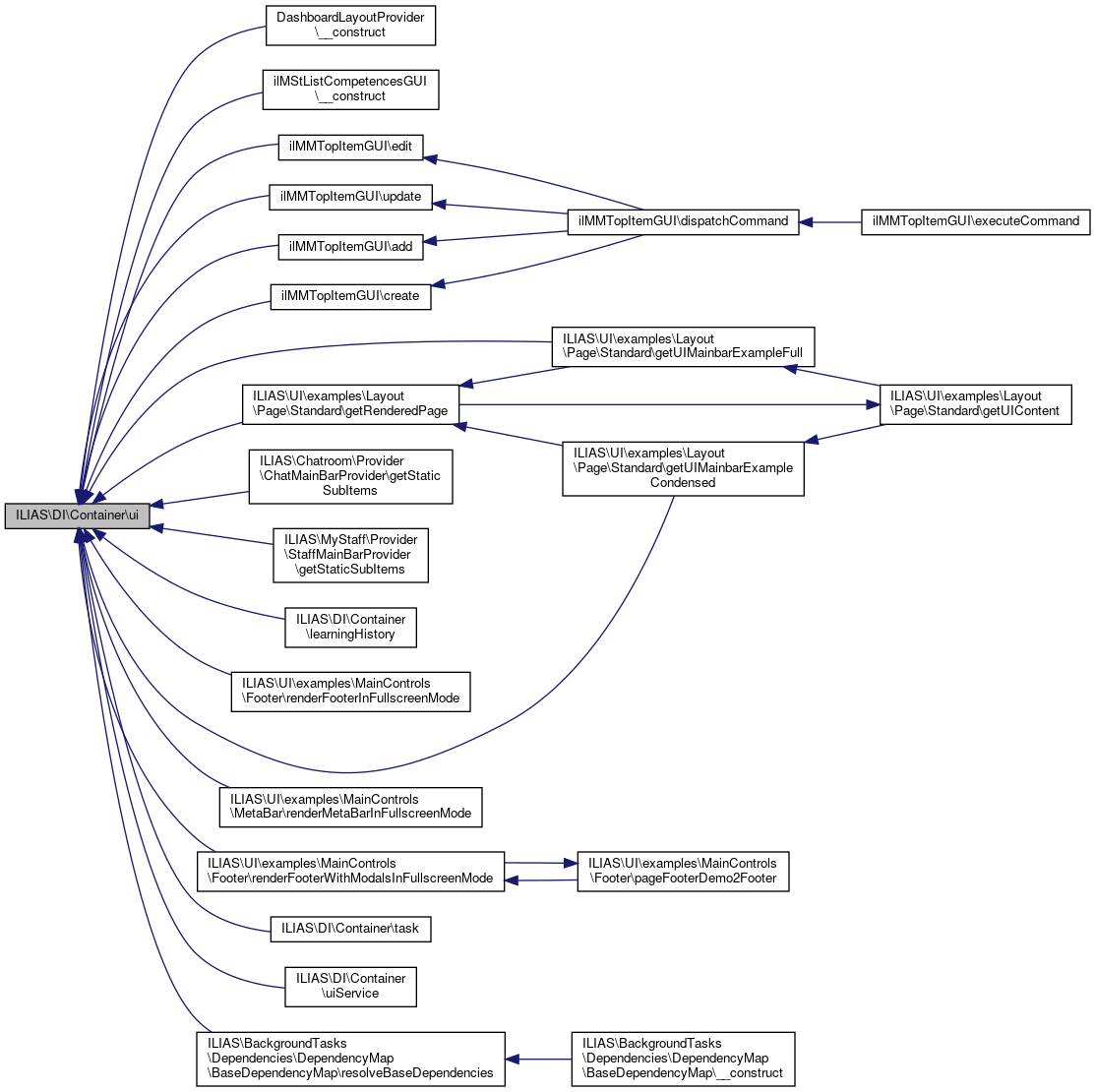 Referenced by DashboardLayoutProvider\__construct(), ilMStListCompetencesGUI\__construct(), ilMMTopItemGUI\add(), ilMMTopItemGUI\create(), ilMMTopItemGUI\edit(), ILIAS\UI\examples\Layout\Page\Standard\getRenderedPage(), ILIAS\Chatroom\Provider\ChatMainBarProvider\getStaticSubItems(), ILIAS\MyStaff\Provider\StaffMainBarProvider\getStaticSubItems(), ILIAS\UI\examples\Layout\Page\Standard\getUIMainbarExampleCondensed(), ILIAS\UI\examples\Layout\Page\Standard\getUIMainbarExampleFull(), ILIAS\DI\Container\learningHistory(), ILIAS\UI\examples\MainControls\Footer\renderFooterInFullscreenMode(), ILIAS\UI\examples\MainControls\Footer\renderFooterWithModalsInFullscreenMode(), ILIAS\UI\examples\MainControls\MetaBar\renderMetaBarInFullscreenMode(), ILIAS\BackgroundTasks\Dependencies\DependencyMap\BaseDependencyMap\resolveBaseDependencies(), ILIAS\DI\Container\task(), ILIAS\DI\Container\uiService(), and ilMMTopItemGUI\update().