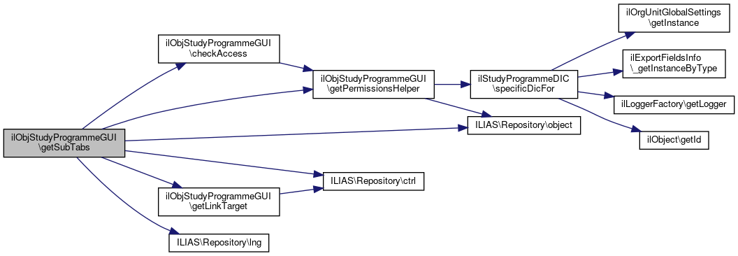 Here is the caller graph for this function:| ilObjStudyProgrammeGUI::getSubTabs | ( | string | $parent_tab | ) |