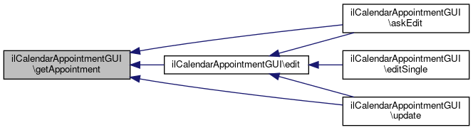 Here is the call graph for this function:| ilCalendarAppointmentGUI::getAppointment | ( | ) |